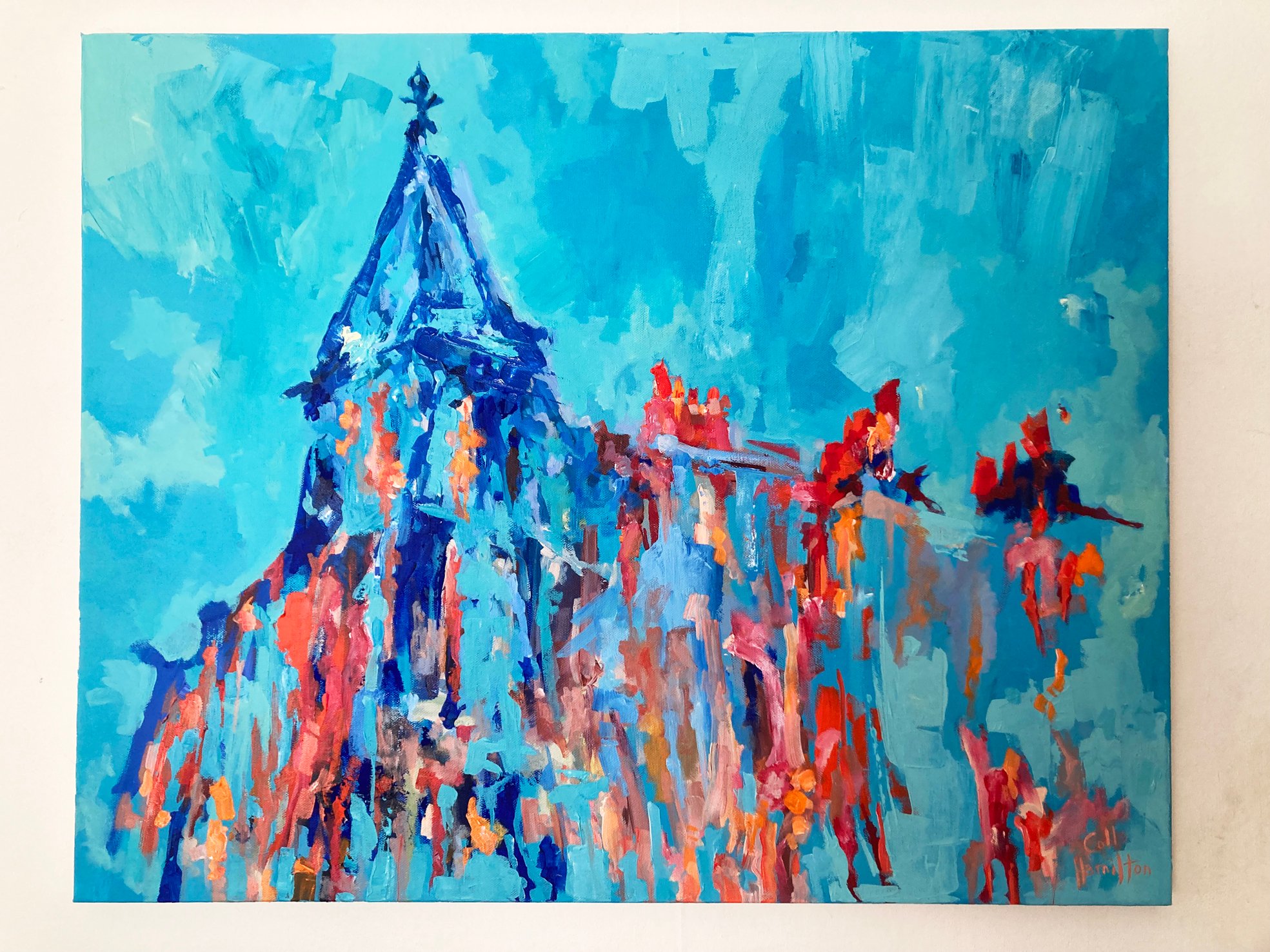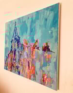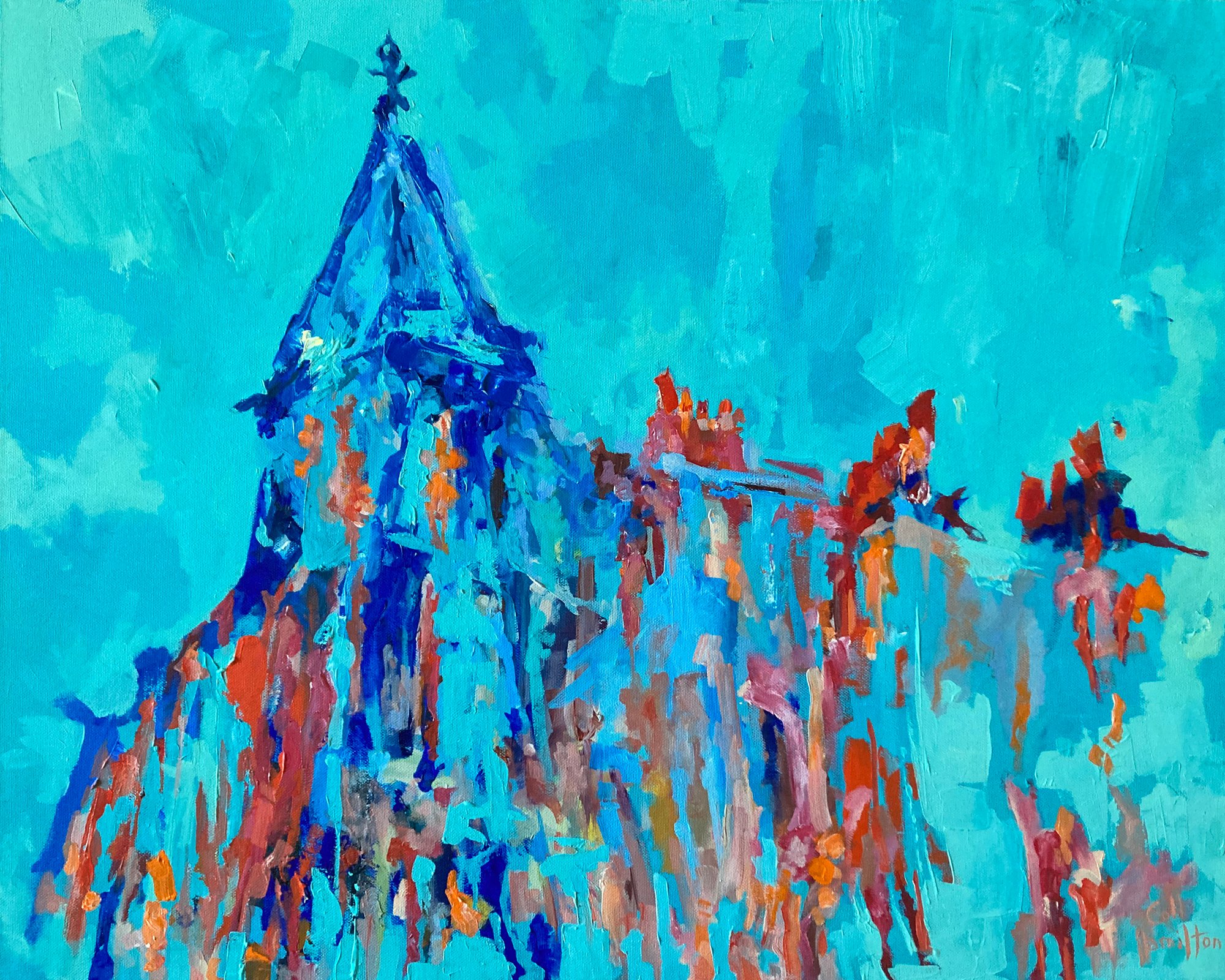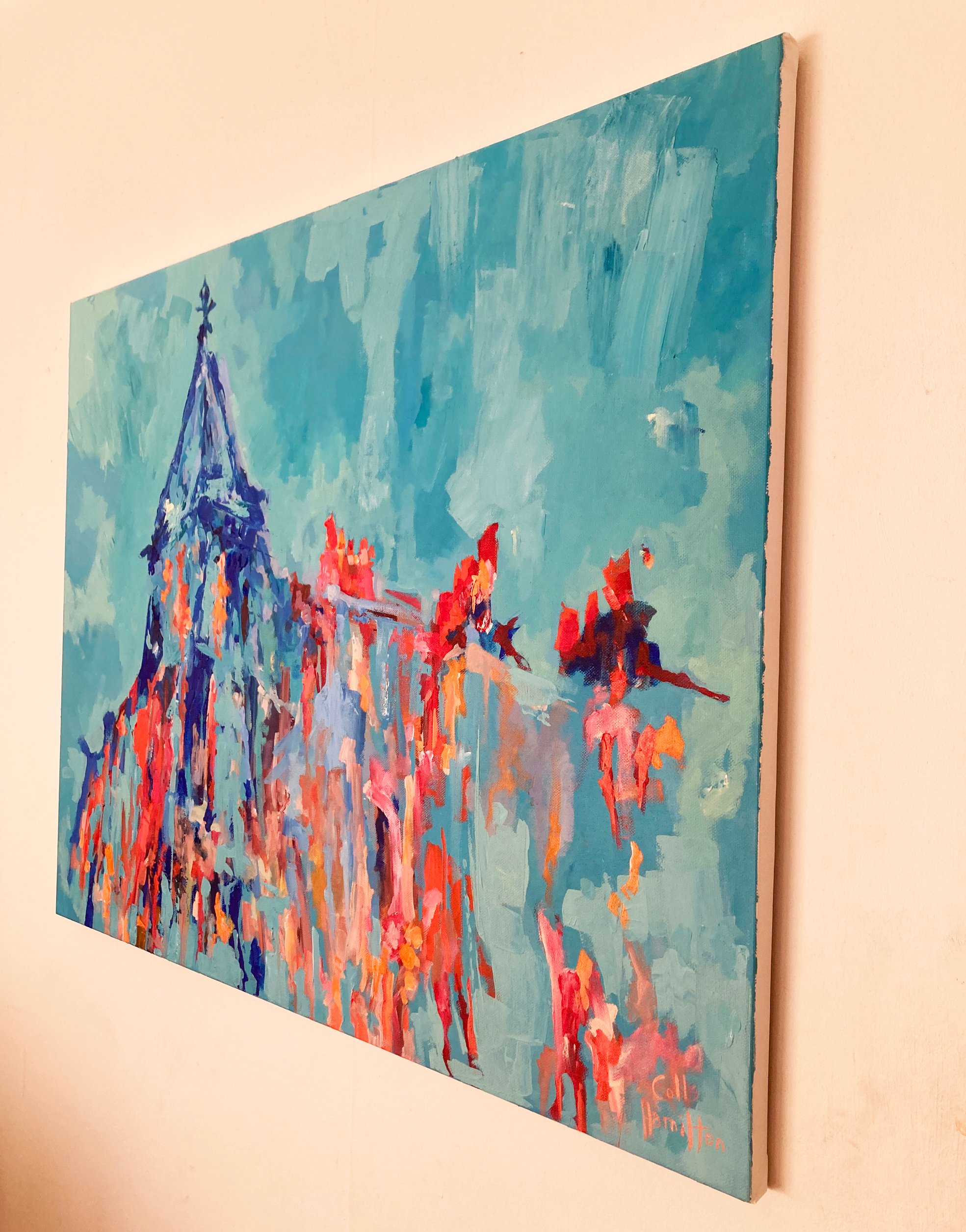 A painting based on sketchbook drawings created in Summer 2025 when I set off to draw in Maxwell Park and then got caught in a sudden downpour of rain despite it being a pretty sunny and warm day. As I walked home soaked I noticed the tenements on Afton Street in Shawlands glistening after the rain and stopped to sketch them quickly in soft pastels.