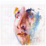 A drawing rendered in charcoal, soft pastels and coloured pencil on pages from blank accounting book.