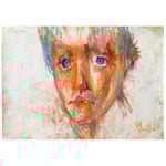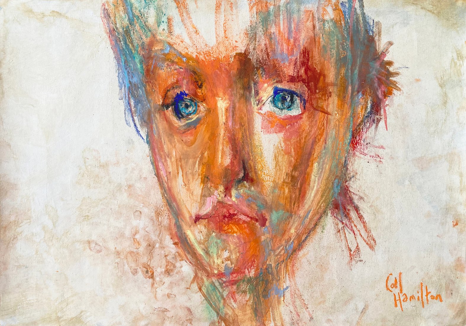 A drawing rendered in charcoal, soft pastels, coloured pencil and acrylic paint on paper.