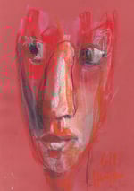 A drawing rendered in soft pastels and charcoal on card.