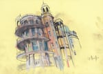 A sketchbook drawing of the old Victoria Infirmary building in Battlefield on the south side of Glasgow (while the building was lying empty waiting to be converted into flats)