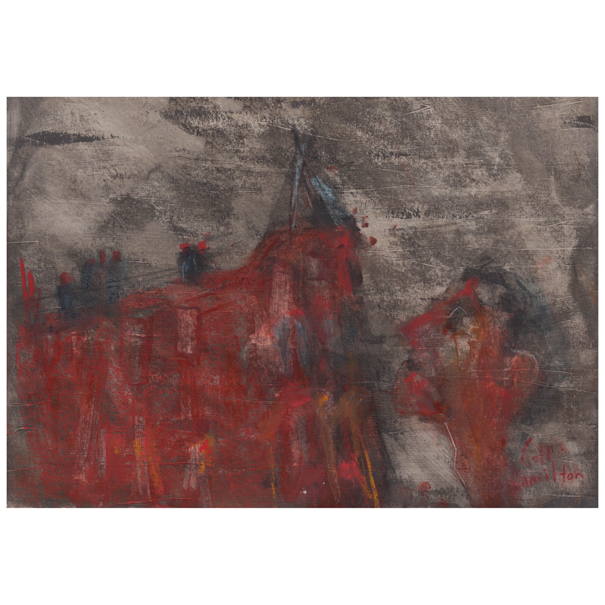 A drawing rendered in charcoal and soft pastels on acrylic paint on paper.
