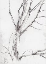 A drawing of a tree inspired by a walk through woods near the village of Insch in Aberdeenshire in December 2023.