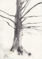 A drawing of a tree inspired by a walk through woods near the village of Insch in Aberdeenshire in December 2023.