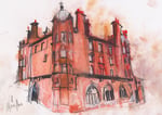 A sketchbook drawing of the old Savings Bank Of Scotland building standing on the corner of Argyle Street and Shaftesbury Street in Glasgow.