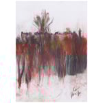A drawing of the townhouses of Park Terrace and the Trinity Towers on Park Circus in the west end of Glasgow viewed through the trees of Kelvingrove Park.