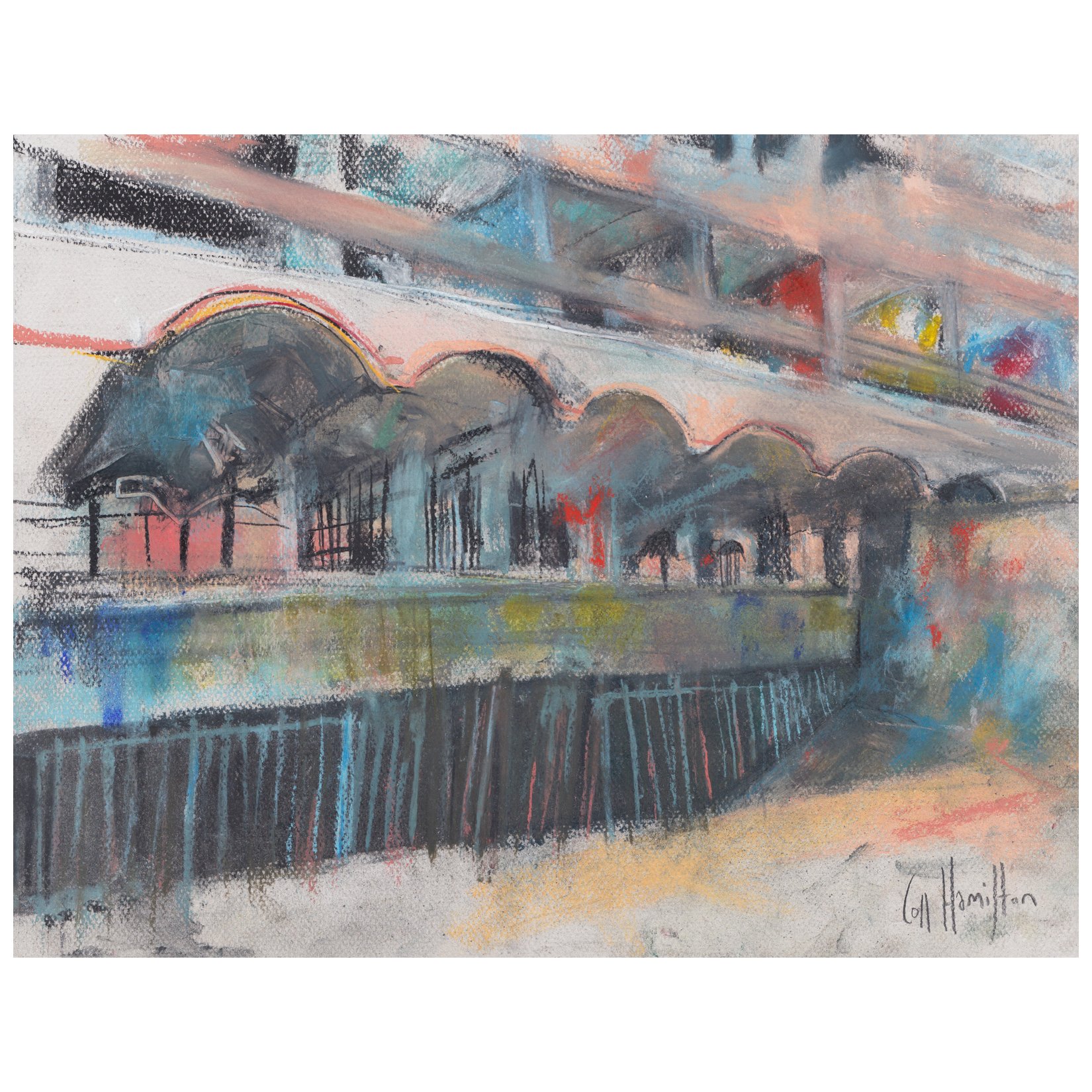 A drawing rendered in soft pastels, charcoal and pencil on paper.
