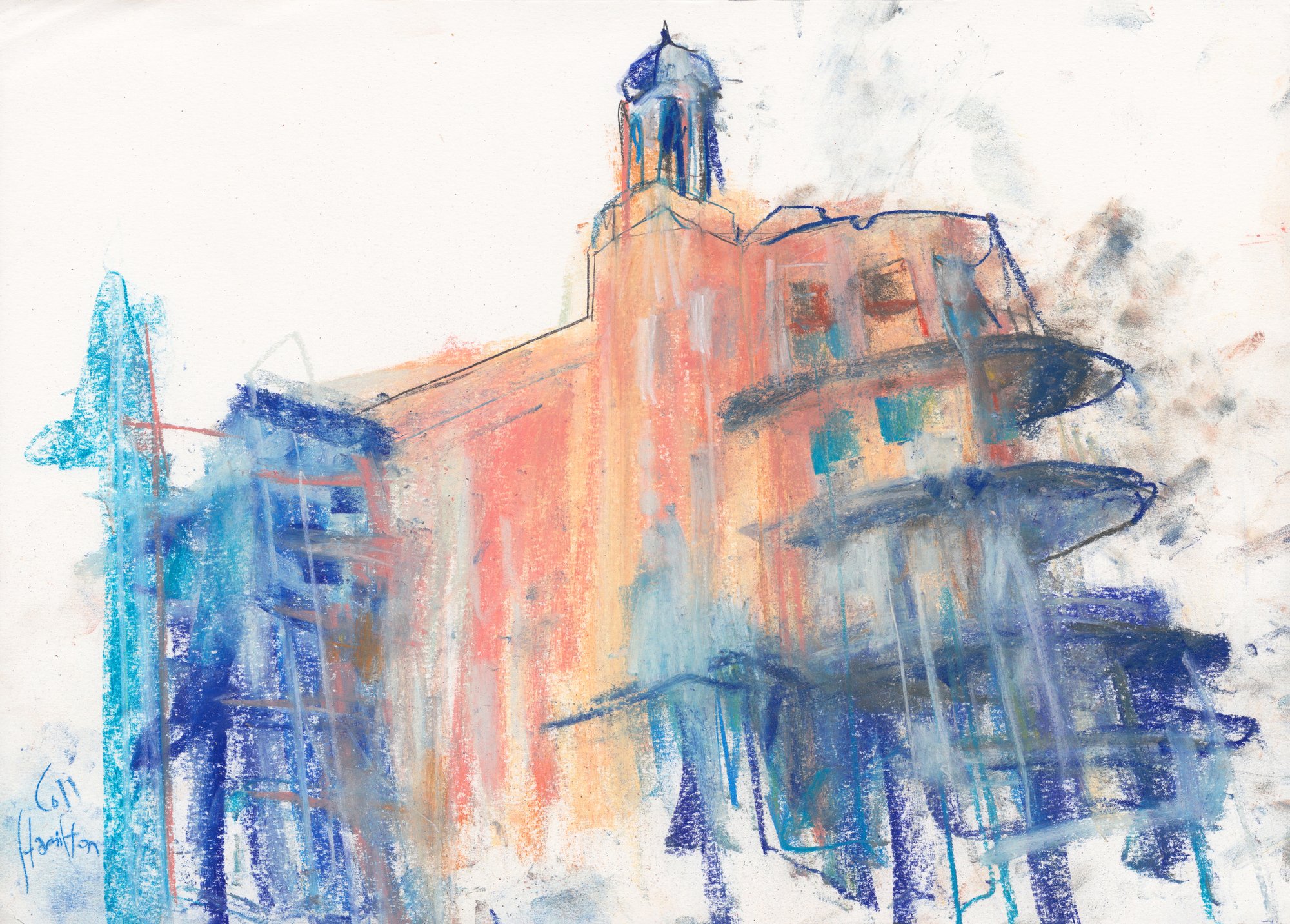 Drawing rendered soft pastels on paper.